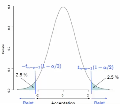 \(H_0 : "\beta_j = 0"\) contre \(H_1 : "\beta_j \neq 0"\)
