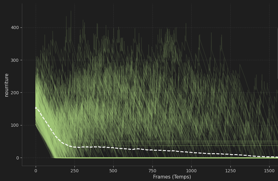Ces lignes de données isolent chaque individu dans son contexte (nombre de concurrents, abondance de nourriture), offrant une vision complète et détaillée de la sélection naturelle simulée.